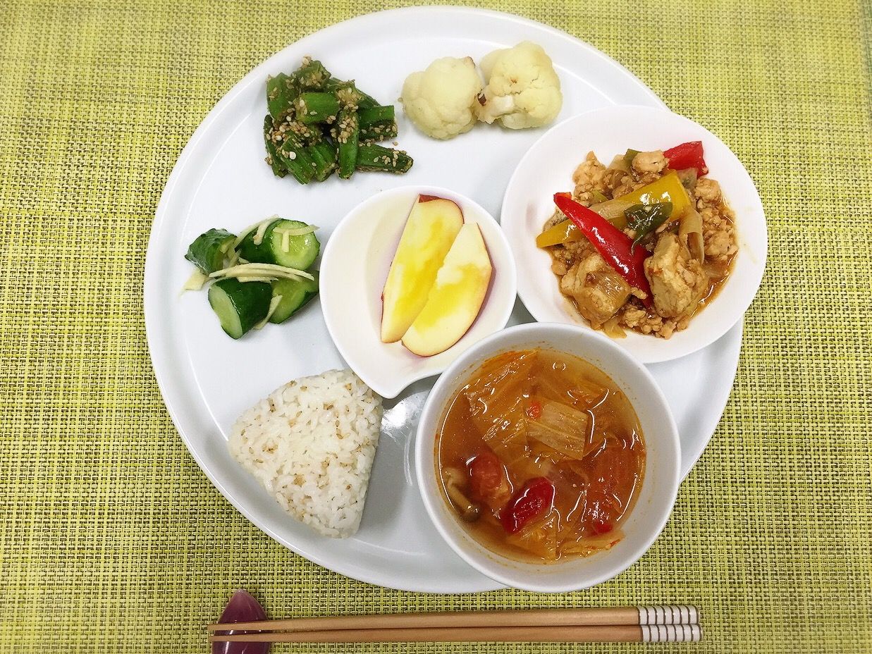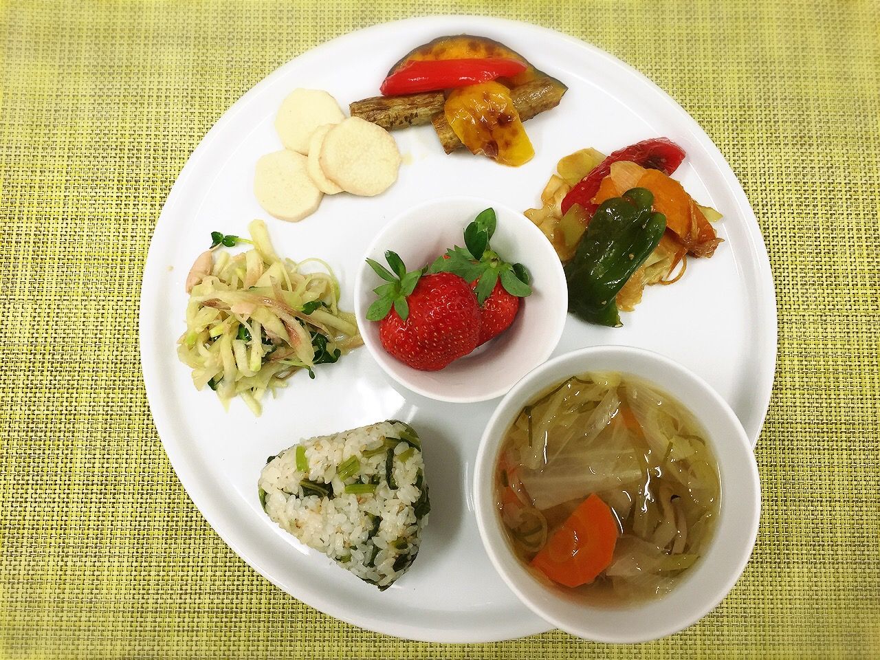 ○まかないは時間との勝負!いかに短時間で美味しいものを作るか、毎回、工夫をこらしています。今回のスープは、昨日のメニューの大根とパプリカとごぼうと豚肉の煮物の煮汁を再利用してスープにしました。野菜と豚肉の出汁がたっぷりと感じられるスープになりましたよ。