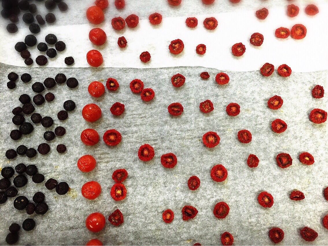 ミニトマトはカリカリに、ブルーベリーは中がソフトなセミドライに仕上がりました。
