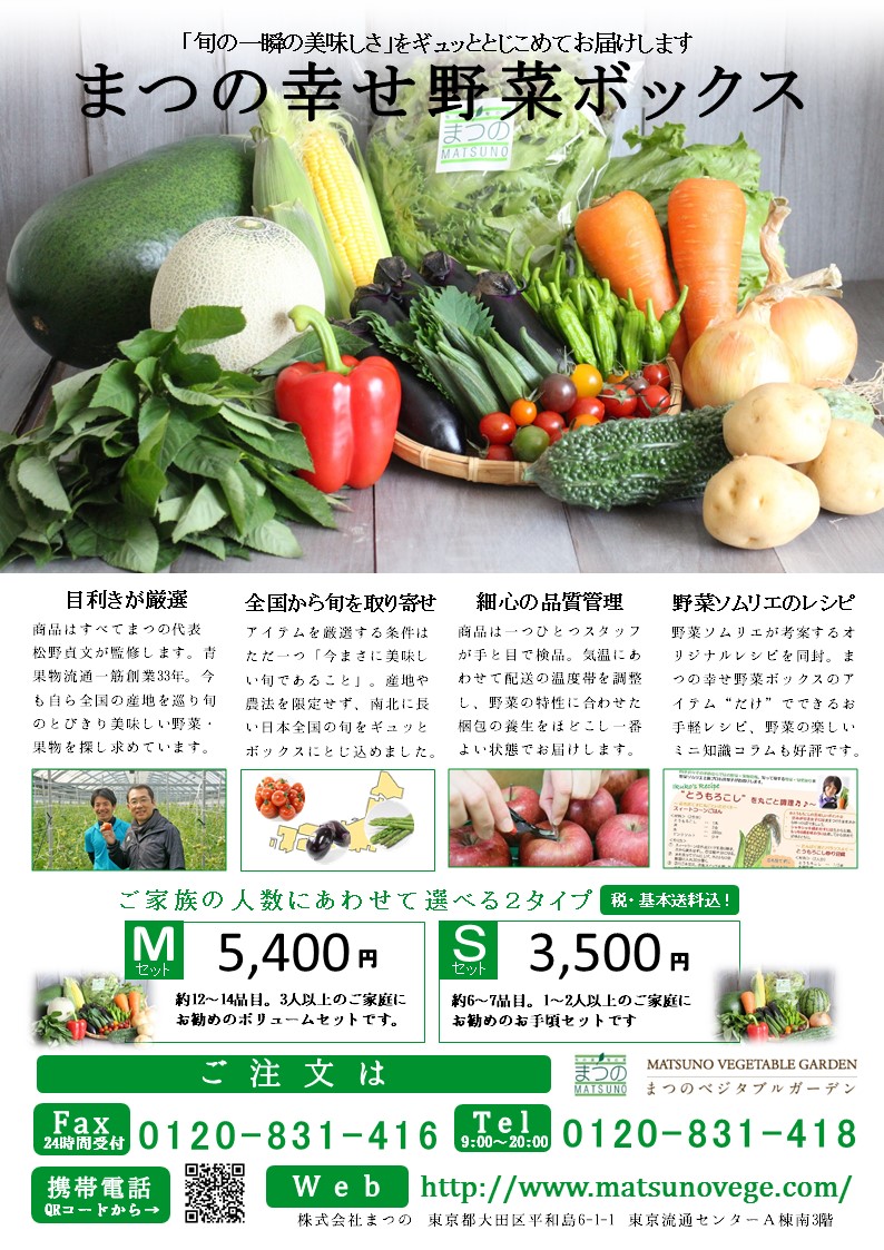 お待たせしました!個人のお客様向けショップ『まつのベジタブルガーデン』でお電話・FAXでもご注文をいただけるようになりました! ●ご自宅の玄…