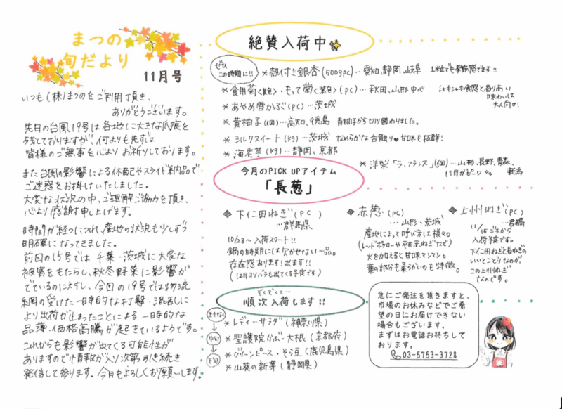 先月の台風の影響により、各地で大きな爪痕を残し、被害に見舞われた皆さまに、心よりお見舞いもうしあげます。また、休配やスライド納品でご迷惑おか…