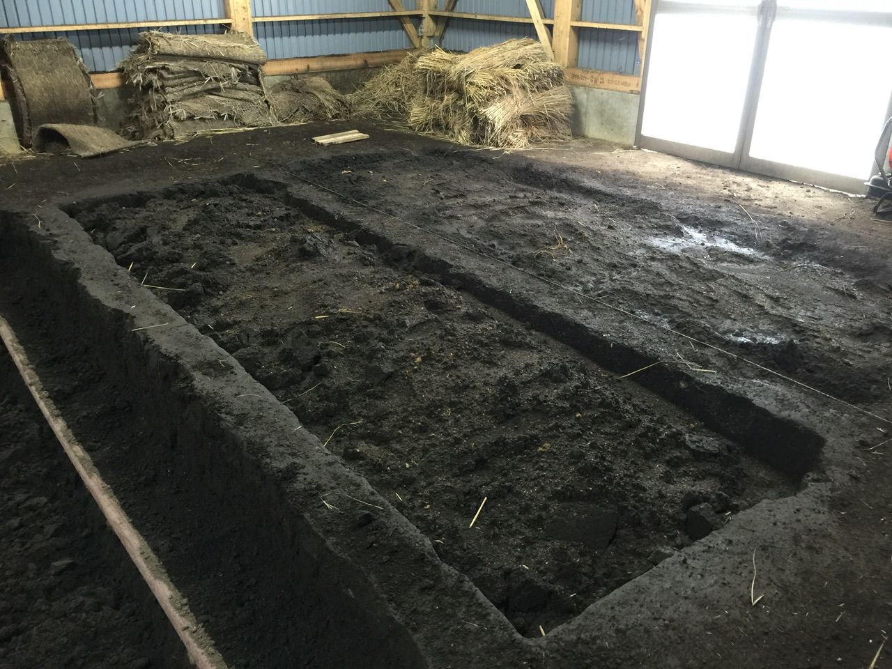 はじめて見る光景に驚きました。 この藁の下に、もやしが育っているというのです。そう!私たちが口にするもやしのほとんどは水耕栽培ですが「大鰐温泉もやし」は珍しい土壌栽培なのです!土中の縦横に何本かの配管をし、温泉熱だけで栽培しています。 配管の深さや配置、湯量は 一軒一軒違うそうです。「サワ」といわれる 土床を見せていただきました。