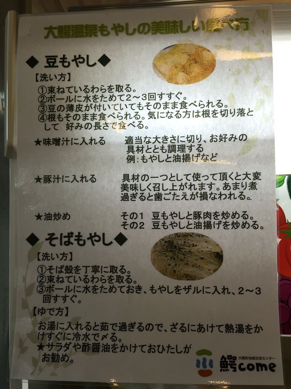 私も購入してみました。 子供の頃、嗅いだことのある野菜むろの匂いがし、懐かしさを感じます。水耕栽培のもやしに比べ、カルシュウム、リン、鉄分、温泉水に含まれるミネラルも加わり、ビタミンB・C・Eも豊富で、発芽することで大豆の2倍程の栄養価が期待されます。雪深い北国の貴重な栄養素となる冬の野菜なのですね〜