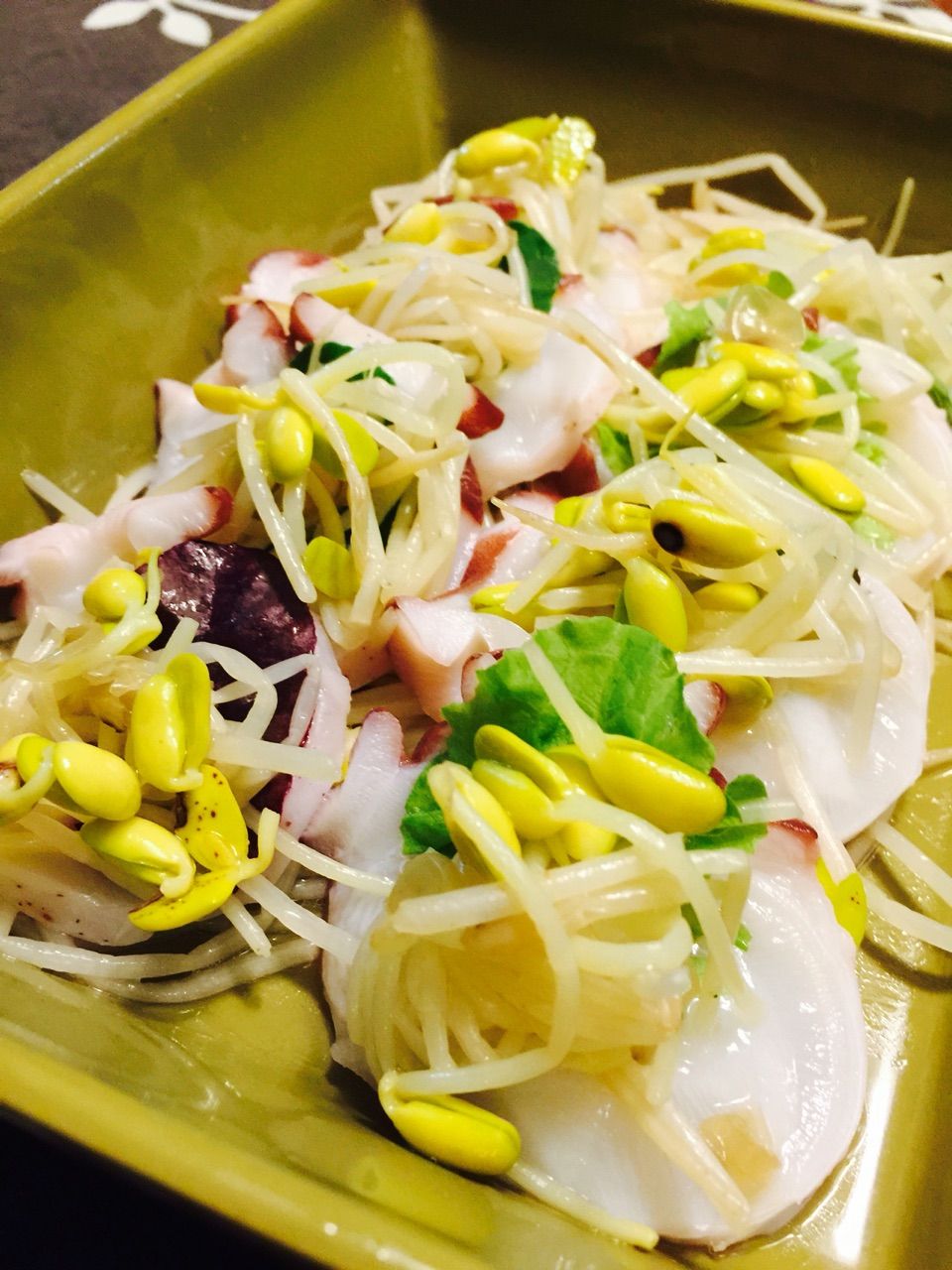 もやしといえばナムル!ごま油・塩・ガラだしで和えタコと一緒にいただきました。