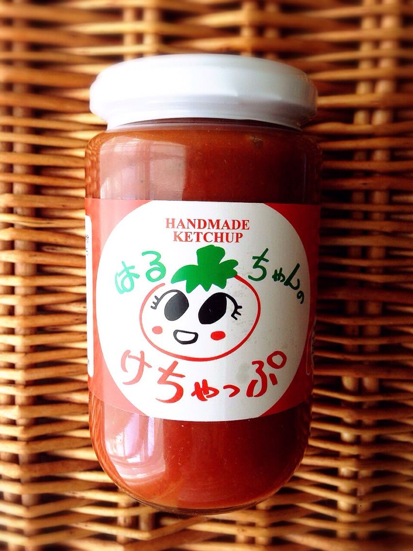 自然と商品名になったのだそうです。はるちゃんとは、娘さんの名前だったのですね。ラベルのイラストは、はるちゃんが小学1年生の頃に描いた絵をはるちゃんのお父様、岡村さんの旦那様が簡略化したデザインにしてくれたそうです。ロゴの文字も旦那様の文字だそうで、まさにご家族やこの地域で作りあげられてきた愛情たっぷりなケチャップなのですね。