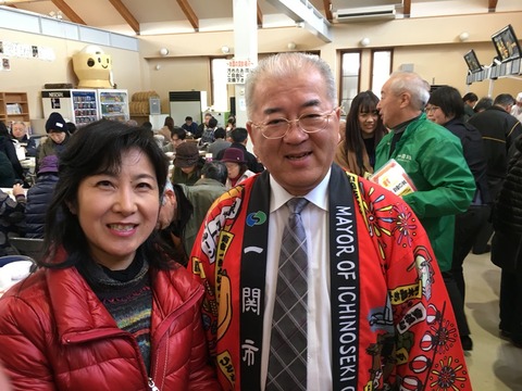 一関の勝部修市長も真っ赤な半纏を着用して餅つきの応援にいらしてました。
