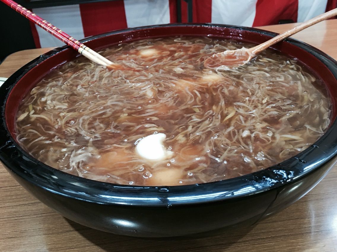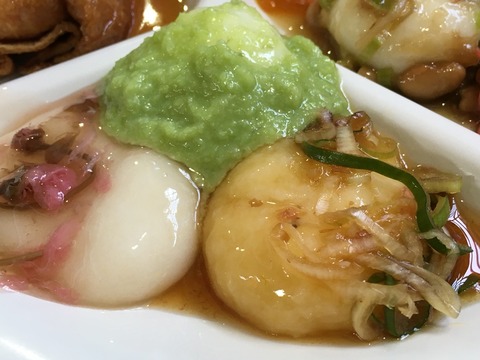 刻みネギと鰹節が入っている醤油味は想像通りに美味しいです。一関のネギは曲がりネギ。