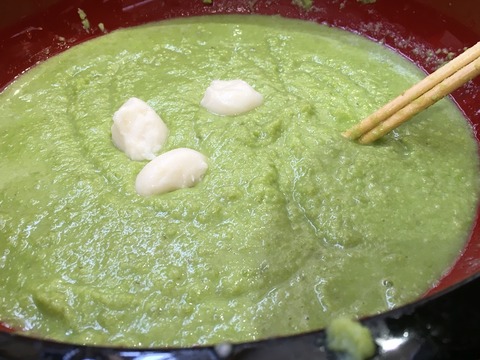 枝豆をすり潰してペースト状にし砂糖などで味付けたもの。