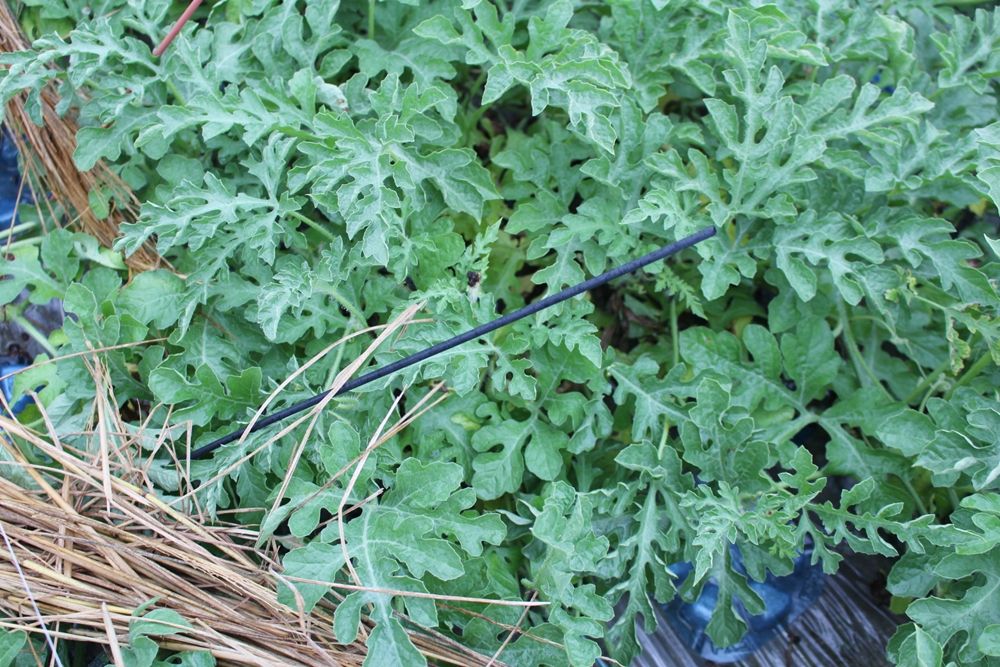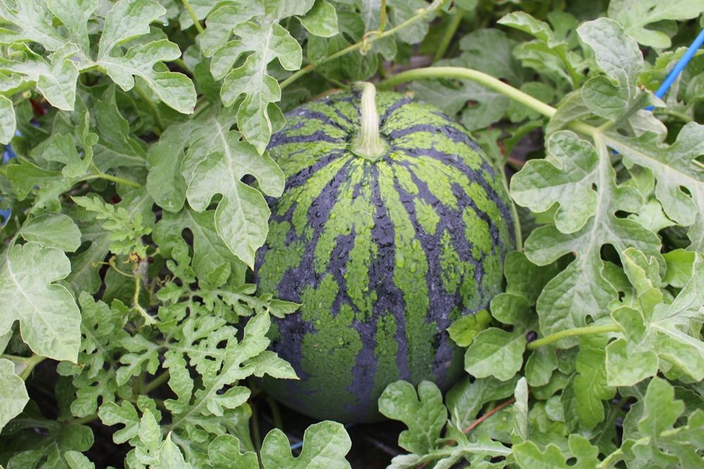 スイカ用の床は8床あります。トンネル移動式栽培が2床、普通栽培が6床。収穫時期は