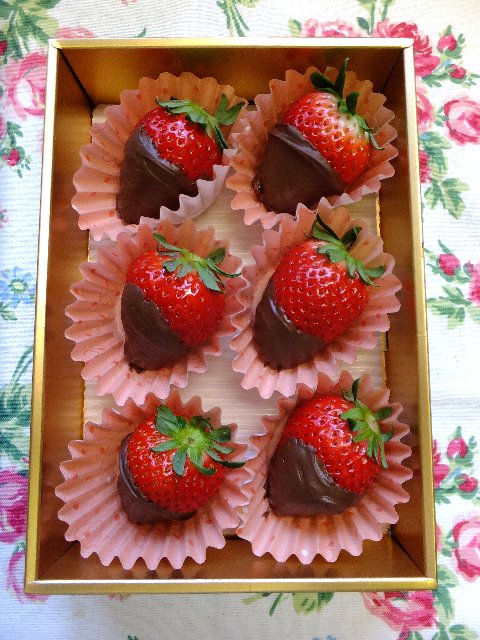 4、好みのパッケージに入れて完成です。*苺はバラ科の植物。花言葉は「幸せな 家庭」「尊敬と愛」。お父さんや恋人に苺のバレンタインチョコ作ってあげてくださいね。