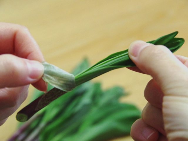 ギョウジャニンニクを使ったお料理をご紹介致します。ギョウジャニンニクは下処理として、はかまと呼ばれる赤紫色の部分を取り除いてからお料理に使います。