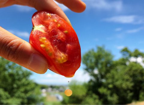 「ここは海に近いわけでもないし、土に塩分を含ませてもいません。塩分要素は何も含んでないんですけど、食べられた方から、塩が含まれているのですか?と聞かれます。塩味は旨味の味なんですよ」皮はパリッとした食感、溢れんばかりの果汁、そして旨味、甘味、酸味、塩味と4つの味を奏でた、ぜいたくなトマトでした。