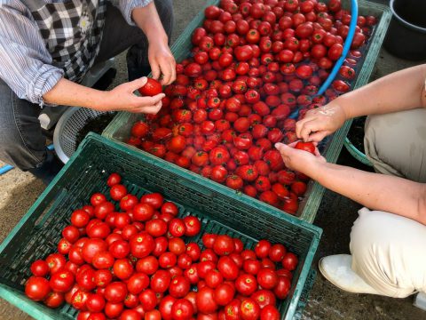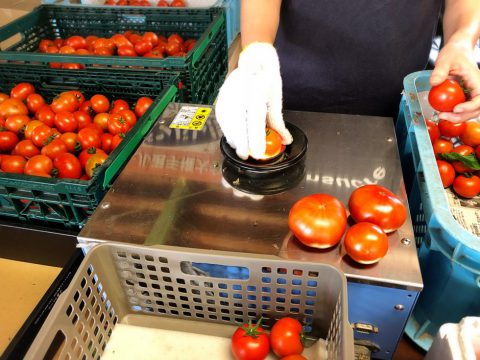 選果場も案内してくださいました。収穫したトマトを一つ一つ機械に乗せて何かを調べているようですが、何をされているのでしょう?「糖度検査をしています。収穫した全てのトマトの糖度を測るんですよ。糖度8.5度以上のものだけが、プレミアムトマトまいひめ物語として出荷されます。8.5度以上とは、いちごと同等の糖度になります。9.5度以上になると特選です。」糖度の高さにもびっくりですが、全てのトマトを一つ一つ手作業で糖度を測るという作業に驚きました!