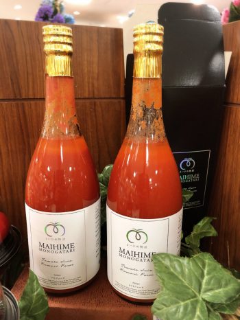 規格外のものはジュースに加工されます。保存料、添加物、水一滴も入れず、100%まいひめ物語のトマトジュースになります。