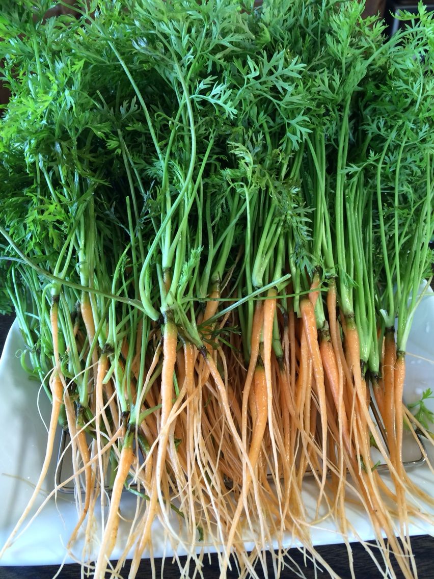 まだ小さくて葉も柔らかい。 しっかり人参の香りもします。 細くて小さな人参も可愛いですね。 早速当日、天ぷらにしましたが たくさん間引き菜をいただいたので 色んなお料理にチャレンジしてみました。