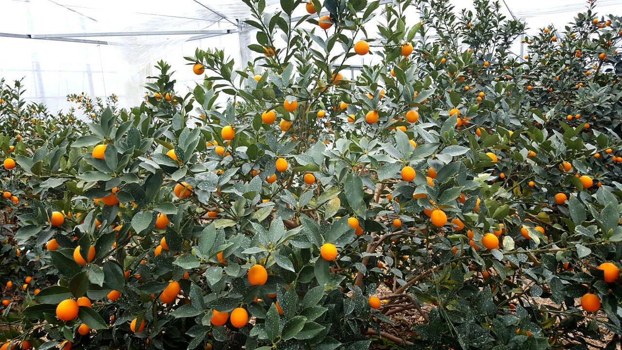 実は「こん太」として出荷できる金柑は「施設栽培のものに限る」という条件があります。温室で温度管理しながら、雨風から金柑を守ることで柔らかな果皮に負荷もかからず、また傷もない