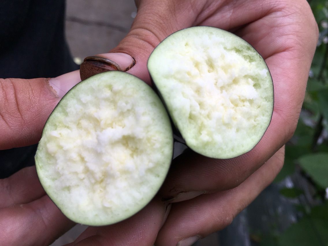 この色素が「ナスニン」と呼ばれるポリフェノールの色素。抗酸化物質で生活習慣病の予防効果が期待される機能性成分です。 皮までしっかりいただきたいものです。