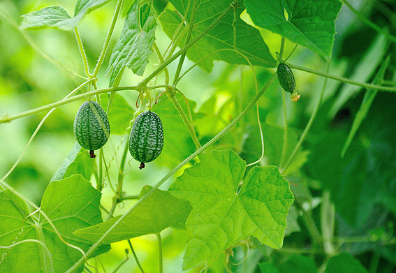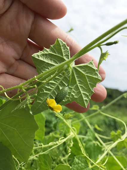 病気にも強く、生命力に富んだ小さな実がたわわに育っています。2〜3センチほどのミニきゅうりは、ひとつずつ丁寧に収穫されます。地域によって差はありますが、関西周辺では露地物のきゅうりの収穫は8月のお盆過ぎ頃までが目安。メキシカンサワーガーキンは、7月から10月頃まで収穫できるのも魅力のひとつです。