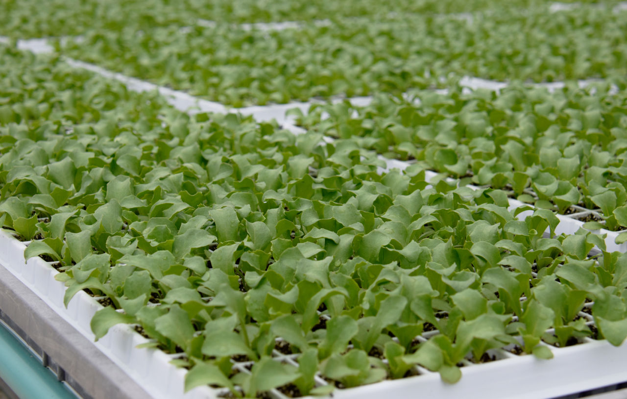 今回はハウスの中で大切に育てているレタスの苗を見せていただきました。