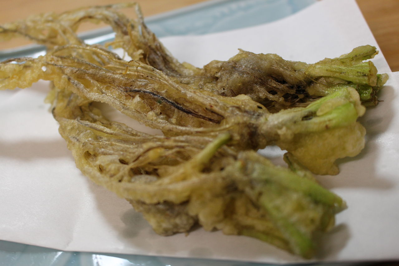 特徴は、白くて長い根っこ。ここがシャキシャキ。とても美味しいんですよ。湯沢市三関地区で栽培される「三関せり」が有名です。露地栽培から始まって、途中でハウス栽培へと切り替わり、雪深い時期も食べる事ができます。ちょっと変わった食べ方が、「根っこの天ぷら」。せりの風味が楽しめる食べ方です。