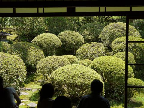 本堂でお話をうかがいった後、カボチャをいただくお部屋へ向かうと、美しいお庭に目を奪われます。京都の暑い夏を忘れてしまうくらいですよ。