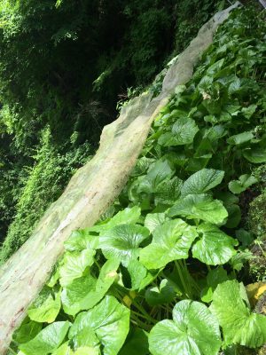 わさびはサラサラ流れる新しいキレイな水と田んぼの栄養を取り込み、1年半くらいかけて太りながら上へ上へと伸びていくのだそう。