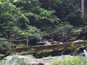 こんな山の上で収穫したわさび、どうやって運ぶのだろう…と思ったら、運転席付きのモノレールを使うのだそう。これがあれば助かりますね!