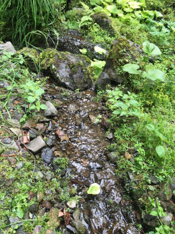 美しい棚田状のわさび田が現れて感激!こんな山の上にわさび田があることにも驚きますが、綺麗な水でしか育たない美味しい奥多摩のわさびは、この山の上での日々の作業のご苦労があってこそできるのですね。