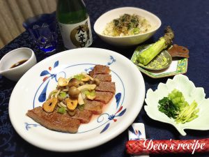 わさびは、葉も茎も根も美味しくて捨てるところがないとのこと。三杯酢や刻んでスパゲティ、炊き込み御飯にパラパラのせるのもおすすめだそうです。私も購入した奥多摩のわさびでお料理を作ってみました。、わさびじゃこチャーハン、おろしステーキわさび添え、和風チキンバーガーなど…