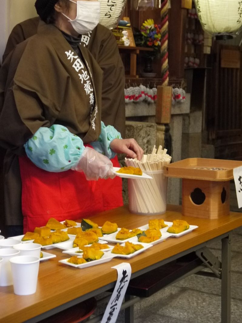 矢田寺の【かぼちゃ炊き】は師走の行事として多くの参拝者が集まり商店街には長い行列が続きます。