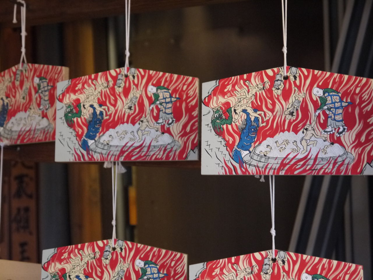 開山の満慶上人が地獄で出会った地蔵の姿を彫らせたと伝え、地獄で人々を救うということから代受苦地蔵ともよばれ、地獄から罪人を救う様子が描かれた絵馬で有名です。
