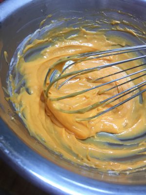 *またまた登場、ブロッコリーを刻んで入れた龍のたまご(大分県産)ディップをのせて