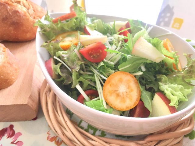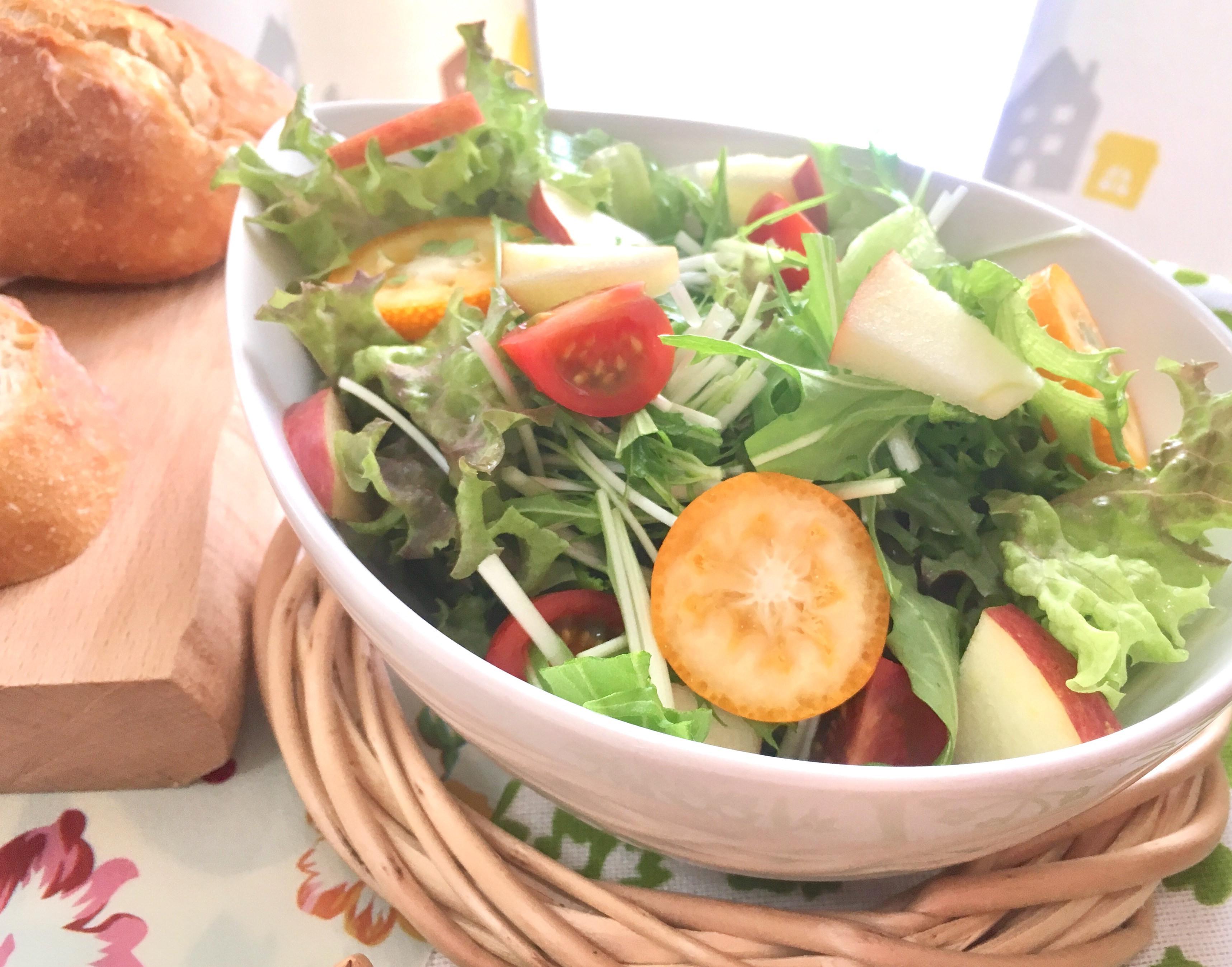 *KiMiDoRiレタスミックスにサンふじりんごとゴーダチーズのスライス挟んで。