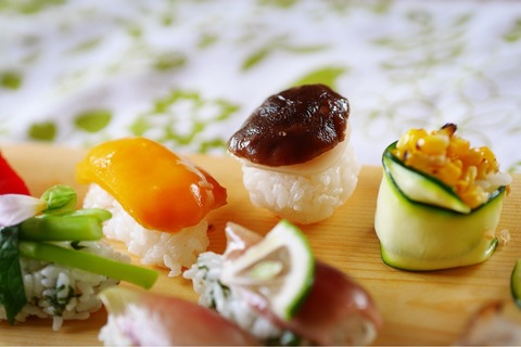 そして完成した10種類の野菜のにぎり寿司「ベジSushi」。
