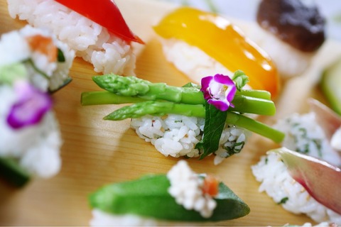 毎日暑い日が続いていますね。食欲が落ちるこの季節、少し酸味のある ものが美味しいですね。今日は そんな日に食べたい野菜のにぎり寿司、彩り鮮やかベジSushiのご紹介です。