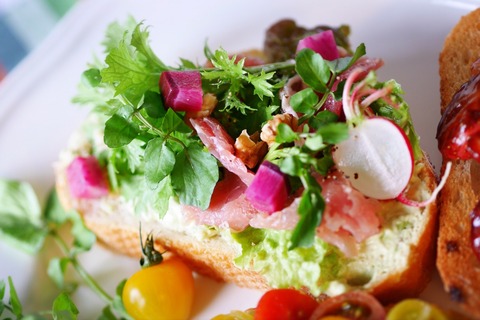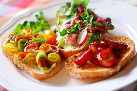 カラフルトマト・いちごバルサミコソテー・生ハムサラダの3種類オープンサンド