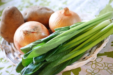 ジャガイモでトロミをつけ、玉ねぎで甘みをつけます。小松菜ポタージュに深みがでました。
