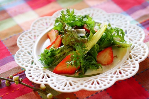 そんなサラダセットと長崎の初めましてのいちごで、いちごとバルサミコ酢 雪うるいサラダ