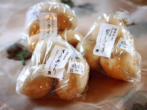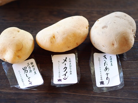 じゃがいもの品種「メークイン」「北あかり」「男爵」この3種類を使って それぞれの特徴を活かしたお料理にしてみました。