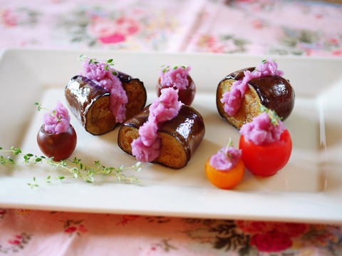 目の覚めるようなパープルの色彩に あっと(笑)驚いてしまいます。ナスのトロリとした食感にポテトのねっとり感がお腹を満たします。