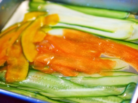 薄くスライスしたカボチャ・ズッキーニ・きゅうり・人参も巻きます。