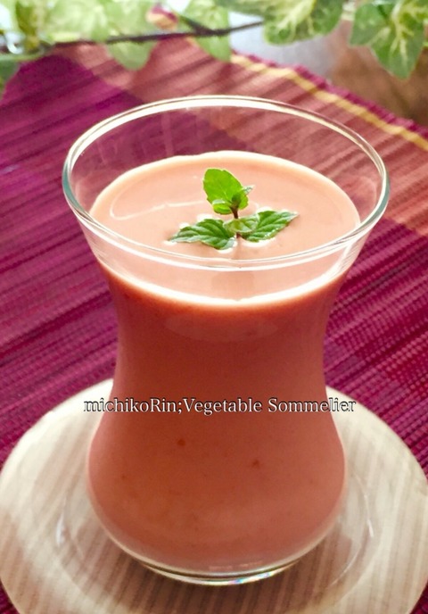 ポタージュスープにしたり、 下の写真のように 豆乳やヨーグルトと一緒にジュースにするのもオススメです。優しい色合いになり、見た目もお味もまろやかです。