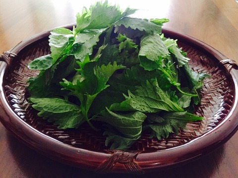 和食を引き立てる香味野菜として食卓にのぼることが多い「大葉」「大葉」とは「青じそ」の商品名で青じその葉を「大葉」として出荷したところ、売れ行きが良く流通量が増えこの名が定着していったようです。葉を束ね販売されているのが一般的ですが、最近は、フィルム包装技術の発達により、袋入りのものをよく