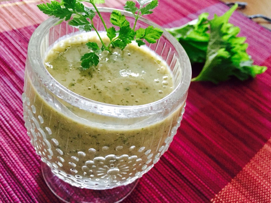 大葉10枚、バナナ1本、プレーンヨーグルト 大さじ2、アーモンドミルク(無糖) 150ccをミキサーで撹拌して出来上がり。β-カロテンは、必要に応じて 体内でビタミンAに変わります。ビタミンAは体内の活性酸素を抑える 抗酸化作用があり、粘膜を健康に保ち 風邪やがん予防、肌の乾燥を防ぐなどの 効果が期待できます。 同じく抗酸化作用があるビタミンEを豊富に含む話題のアーモンドミルクを使用し、相乗効果を狙います。バナナとヨーグルトでマイルドになり 大葉の風味が苦手な方にもオススメ!