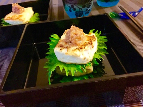 【 大葉と豆腐ソテーの梅肉餡添え】