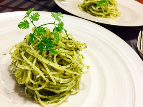 まずは、フードプロセッサーかミキサーを使い大葉 30枚、松の実 20g、ニンニク 1片、オリーブオイル 100cc、塩・こしょう 適量、パルメザンチーズ 適量で、ジェノベーゼソースを作ります。ソースをフライパンで温め茹でたパスタと茹で汁少々加え よく絡めて出来上がり♪松の実の代わりにクルミを使っても美味しいですよ! β-カロテンや鉄の他に カリウム、カルシウム、ビタミンC疲労回復に役立つビタミンB1成長を促進するビタミンB2なども含む栄養豊富な大葉‼︎ 薬味としてだけではもったいないですね〜皆さまも是非、大葉を使ったヘルシーなお料理を楽しんでみてくださいね。