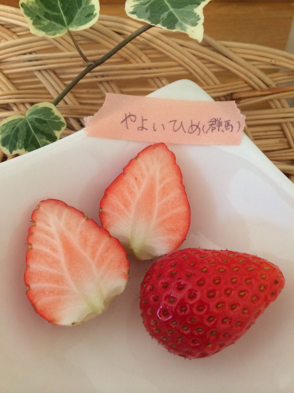 群馬県の「とねほっぺ」と栃木県の「とちおとめ」をかけあわせてできた群馬県オリジナルの品種。「やよい」という名の通り、暖かくなってきた「3月」になっても、安定した品質を保てることも、大きなセールスポイントだそう。