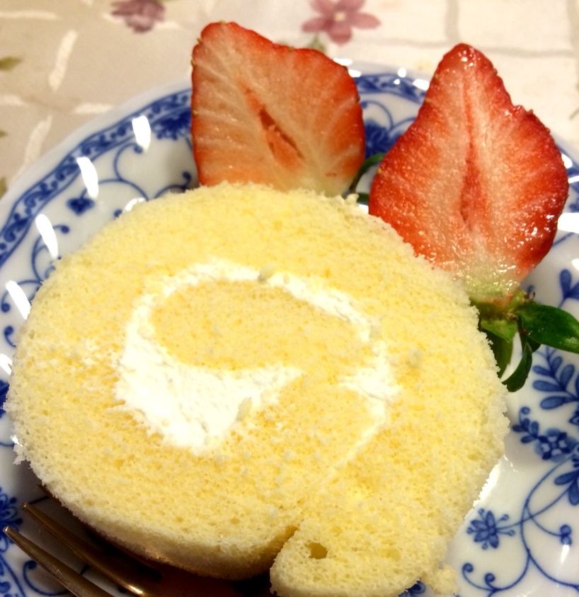 さて、私なりの楽しみ方は・・・シンプルなロールケーキと合わせて、イチゴが主役に思えてくるデザートの一皿に。