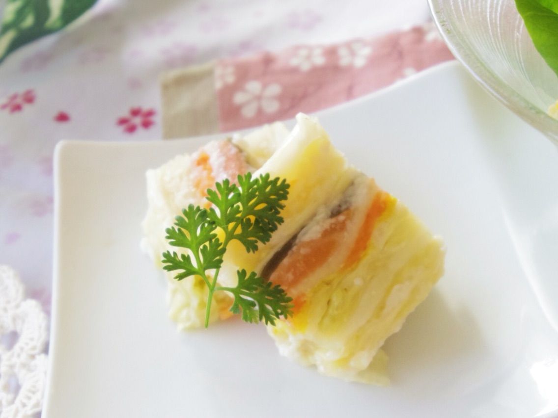 ミルフィーユ風 サラダは菜の花をイメージした ミモザサラダ