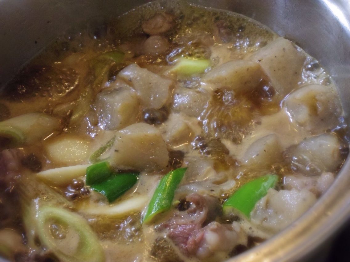 ということでポカポカ温まる里芋料理を作りました。 里芋・牛肉・こんにゃく・長葱を コトコトコト・・・ お醤油の良い香りにそそられます。