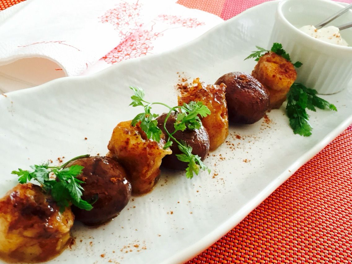 きのこでデザートを考えてみました。ブラウンマッシュルームとバナナをココナッツオイルでソテーして、シナモンパウダーをかけてできあがり。水切りヨーグルトとマスカルポーネを合わせたソースにつけていただきます。とーっても美味しくできて我ながらビックリ(笑)盛り付けを工夫することでブラウンマッシュルームの可愛いフォルムを生かすことができますね♪